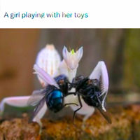A girl playing with her toys