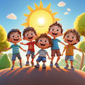 Five little kids, laugh and have fun