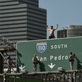 Man on Freeway Sign